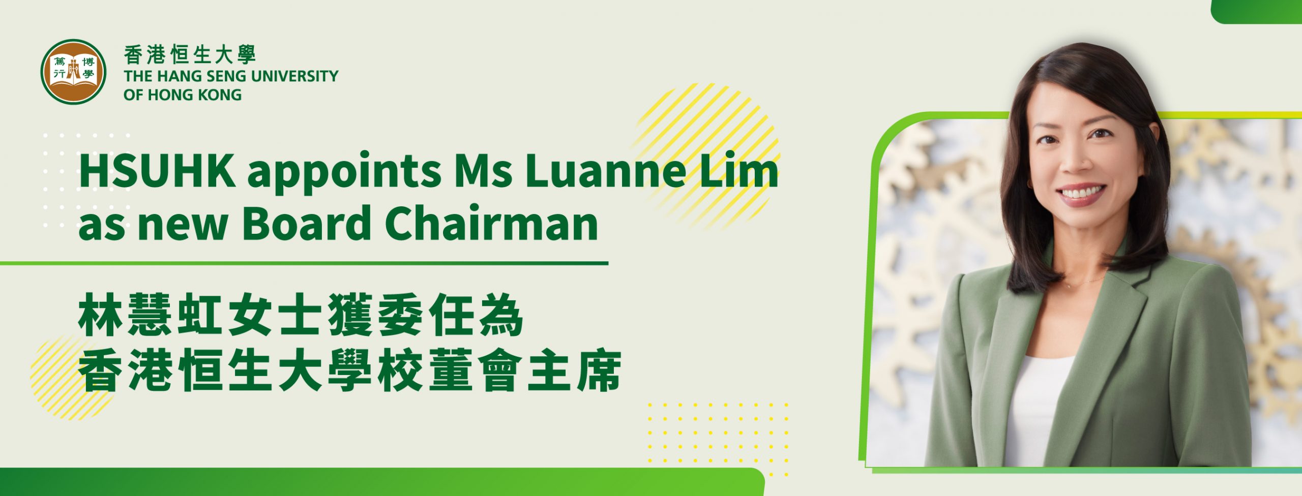 Appointment of Ms Luanne Lim as Chairman of the Board of Governors of HSUHK