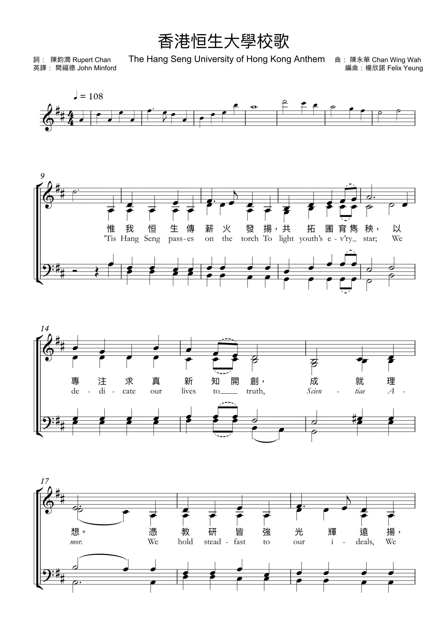 HSUHK Anthem (Chinese version only) https://www.hsu.edu.hk/wp-content/uploads/2020/08/香港恒生大學校歌-恒管版(合唱版)4部July-2020.wav Other University Songs