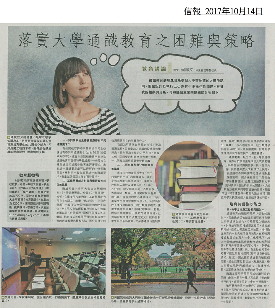 | 09/10/2017 | 落實大學通識教育之困難與策略 | 信報 |