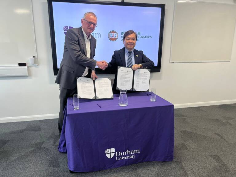 Professor Joshua Mok (right) signs an MoU with Professor Martin Evans, Dean of Faculty of Social Sciences at Durham University.