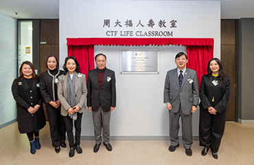 2026年1月9日 為答謝周大福人壽保險有限公司對香港恒生大學的熱心支持,大學特別將何善衡教學大樓A301教室命名為「周大福人壽教室」,並於2026年1月9日舉行感謝暨命名典禮。典禮由周大福人壽執行董事兼行政總裁葉文傑先生、首席營業總裁周詠姬女士、首席人力資源總監陳穆娜女士、首席業務發展官葉麗芳女士、恒生大學校長何順文教授,以及副校長(教學及學生體驗)符可瑩教授共同主禮,周大福人壽嘉賓與恒生大學教職員共同見證此重要時刻。「周大福人壽教室」設計舒適,為師生提供良好的學習及交流空間。該教室亦體現恒生大學獨特的「博雅+專業」教育模式,彰顯大學對全人發展、人文價值、個人成長及社會責任的堅持和重視,致力培育未來優秀領袖及傑出專才。恒生大學與周大福人壽一直保持以共同價值與互信為基礎的長期合作關係。除支持恒生大學的發展之外,周大福人壽亦透過獎學金支持本校學生,豐富他們的學術旅程,展現企業培育人才的承諾。2025年5月,雙方簽署合作備忘錄,攜手在大灣區內為家族辦公室和相關的從業人員提供培訓服務,協助業界聯通海外尋找商機。 (左起)葉麗芳女士、陳穆娜女士、周詠姬女士、葉文傑先生、何順文校長與符可瑩教授主持揭幕儀式。