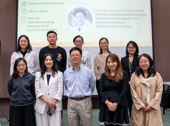 2025年10月23日 教與學發展中心與研究生院於2025年10月合辦「結構方程式模型」工作坊系列,邀得奧克蘭大學管理學與國際企業學系組織行為學教授張偉雄教授主講。結構方程式模型是一種廣泛應用於社會科學研究的統計工具,包括管理、市場營銷、心理學和教育,特別是針對調查數據,透過考慮測量誤差提高統計估算的準確性。張教授於10月14至16日舉行的線上工作坊,重點介紹結構方程模型的原理及基礎概念,並以實例解析及示範如何運用 measureQ 軟件執行驗證性因素分析,以及探討如何處理遺漏值和建立觀察變量模型的技巧。張教授其後於10月22至23日舉行的實體工作坊,進一步深入探討測量恆等性與調節效應等課題。是次工作坊系列結合理論講授與實務操作,為從事實證研究的師生提供難得的學習機會,加深對結構方程模型的應用知識與分析技巧的理解,更有效地應對當前的研究挑戰。 張偉雄教授講解結構方程式模型。 張教授(前排中)與副校長(教學及學生體驗)符可瑩教授(前排左二)和教與學發展中心主任鄭家明博士(前排右二),以及參加者合照。