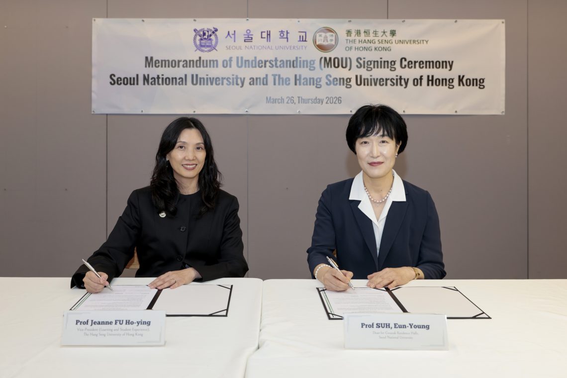 恒生大學賽馬會住宿書院與首爾大學住宿書院於2026年3月26日簽署合作備忘錄,正式啟動兩校合作。雙方將透過多層次交流,加強在住宿教育方面的合作,幫助學生拓展國際視野。