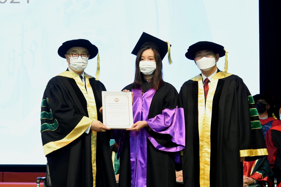 校長何順文教授在典禮上致辭祝賀應屆畢業生,並鼓勵畢業生重新檢視個人素質及提升工作的知識與技能,以適應變化迅速的世界,實現自己的人生目標。他更勉勵畢業生以「5P態度」和「5C技能」不斷求進,「5P」包括專業 (Professionalism)、熱誠(Passion)、正面(Positiveness)、堅毅(Perseverance)及以人為本(People-orientation);「5C」則包括批判性思考 (Critical thinking)、創意(Creativity)、溝通(Communication)、合作(Collaboration)及主動地不斷學習(Continuous active learning)。